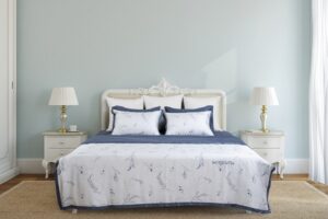 Bộ chăn ga chun Hanvico BSH107 sở hữu màu sắc sang trọng và thời thượng. Cùng với điểm nhấn điểm nhấn lá và hoa ở phần vỏ gối và chăn tạo nên vẻ đẹp bắt mắt, thu hút người chiêm ngưỡng ngay từ cái nhìn đầu tiên. Bộ chăn ga chun Hanvico BSH107 hiện lên không hề gây nóng bức mà ngược lại